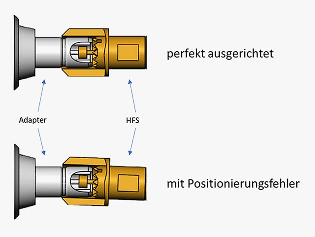 - Der Positionierungsfehler: Dieser tritt auf, wenn der HF-Kontaktstift nicht genau auf das Gegenstück ausgerichtet ist.