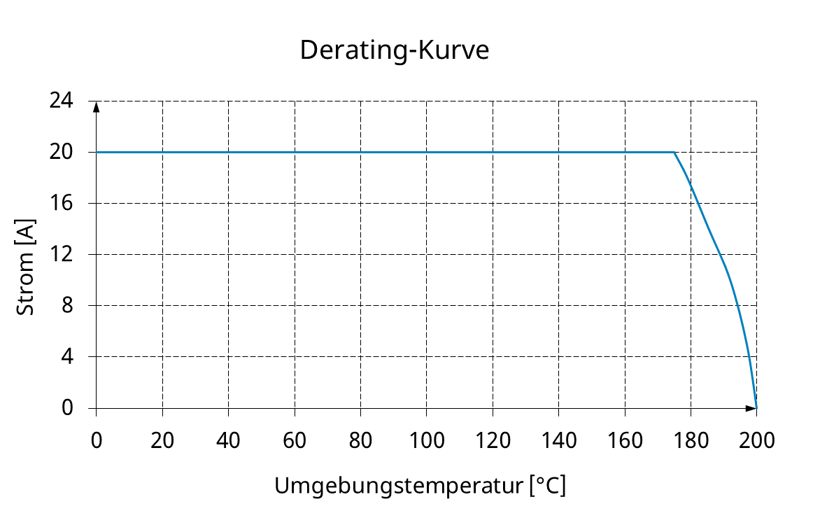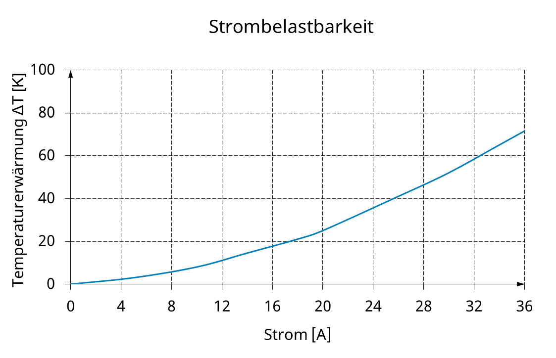 - Belastbar mit Strömen bis zu 18 A bei DeltaT ≤ 20 °K