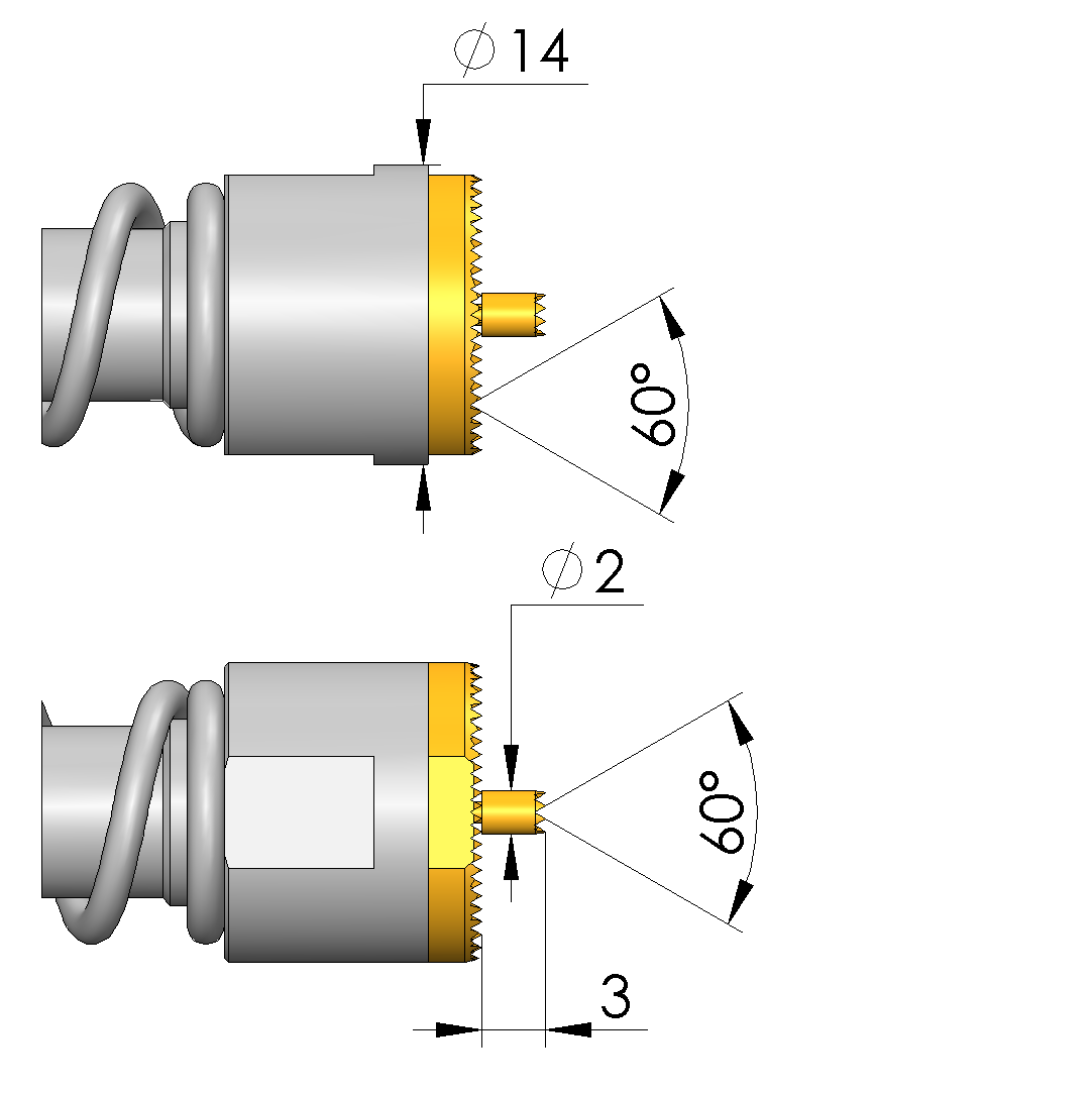 - Anschlussart am Kontaktstift: Gewindeanschluss