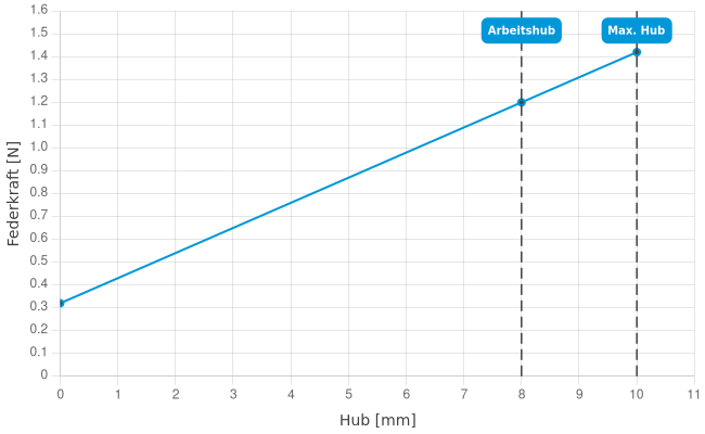 | Federkraft bei Arbeitshub: | 1,2 N |