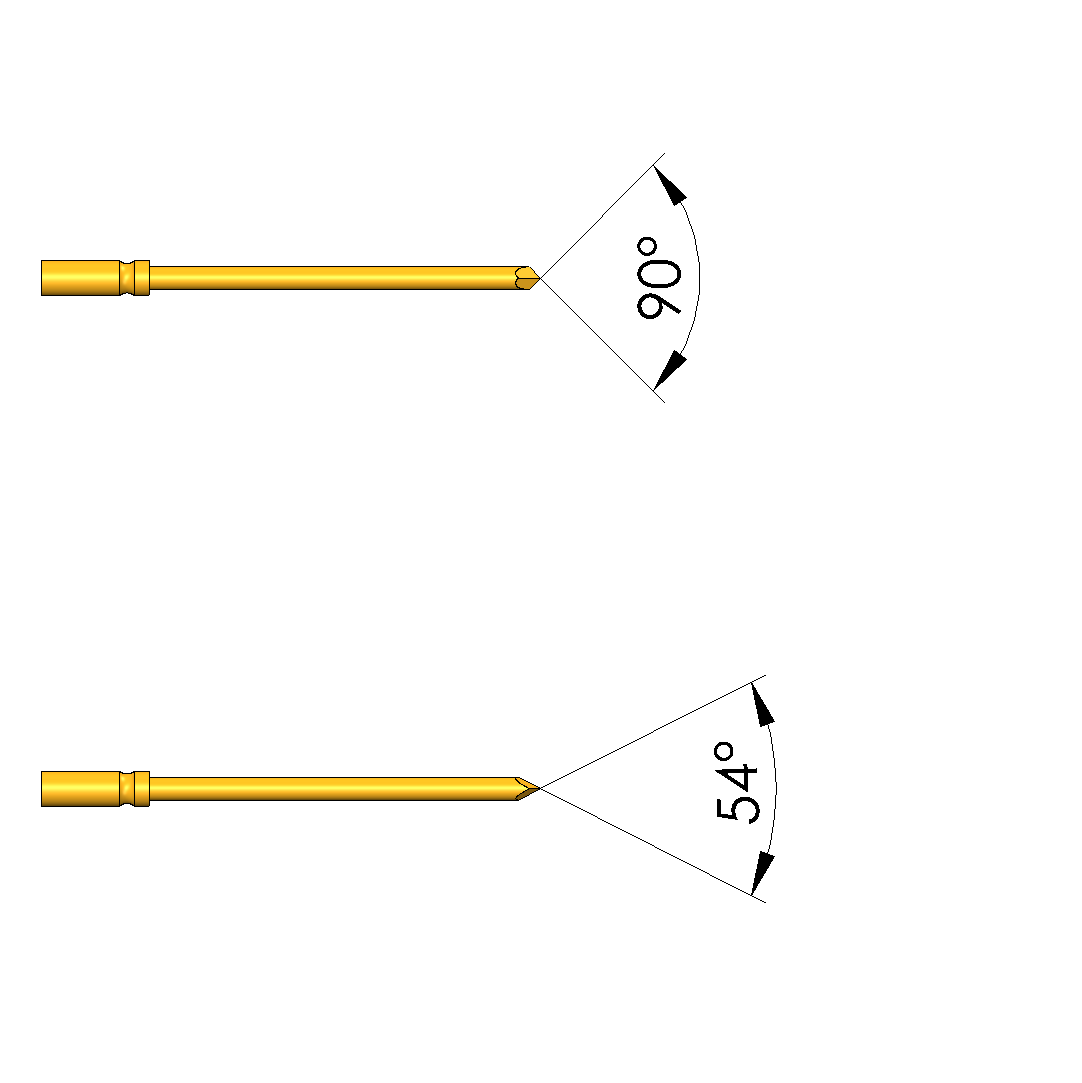 - Für einen optimalen Kontakt an den Prüfpunkten (z.B. PADs, VIAs, und PINs) stehen verschiedene Kopfformen in unterschiedlichen Durchmessern und Veredelungen zur Auswahl.