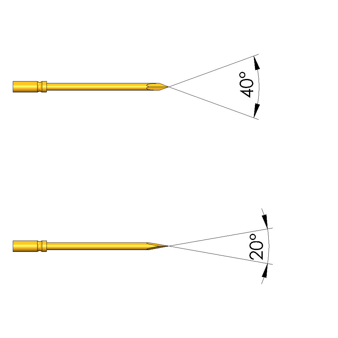 - Für einen optimalen Kontakt an den Prüfpunkten (z.B. PADs, VIAs, und PINs) stehen verschiedene Kopfformen in unterschiedlichen Durchmessern und Veredelungen zur Auswahl.