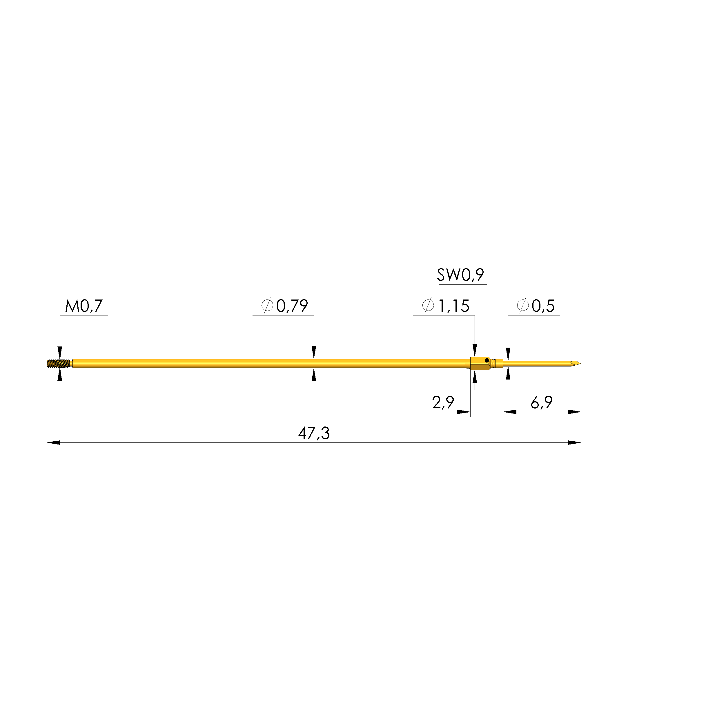 - Kopfdurchmesser: 0,5 mm