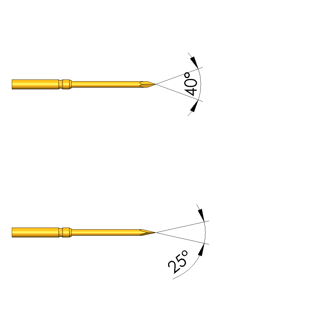- Für einen optimalen Kontakt an den Prüfpunkten (z.B. PADs, VIAs, und PINs) stehen verschiedene Kopfformen in unterschiedlichen Durchmessern und Veredelungen zur Auswahl.