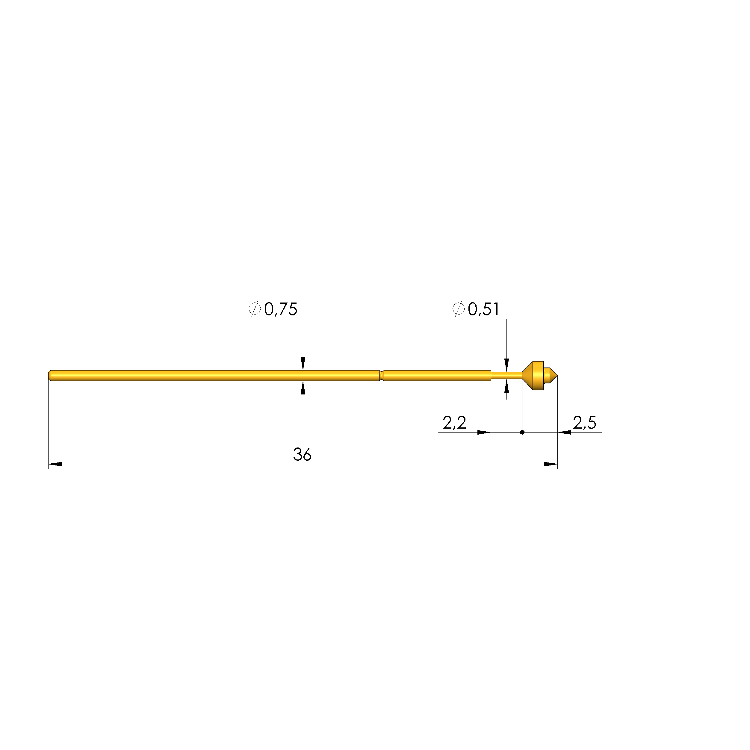 • Gesamtlänge: 36 mm