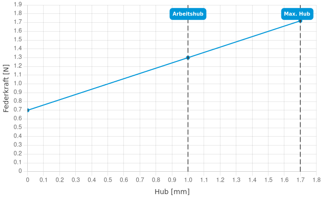 - Federkraft bei Arbeitshub: 1,3 N