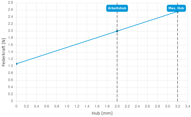 | Federkraft bei Arbeitshub: | 2 N |