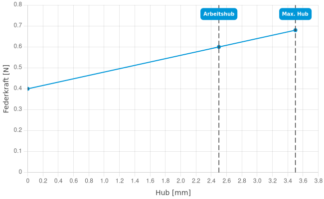 | Federkraft bei Arbeitshub: | 0,6 N |
