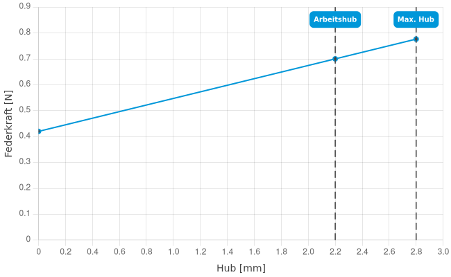 | Federkraft bei Arbeitshub: | 0,7 N |