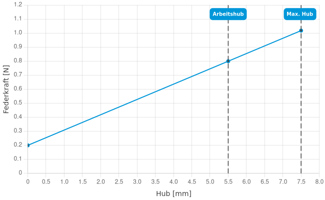 - Federkraft bei Arbeitshub: 0,8 N