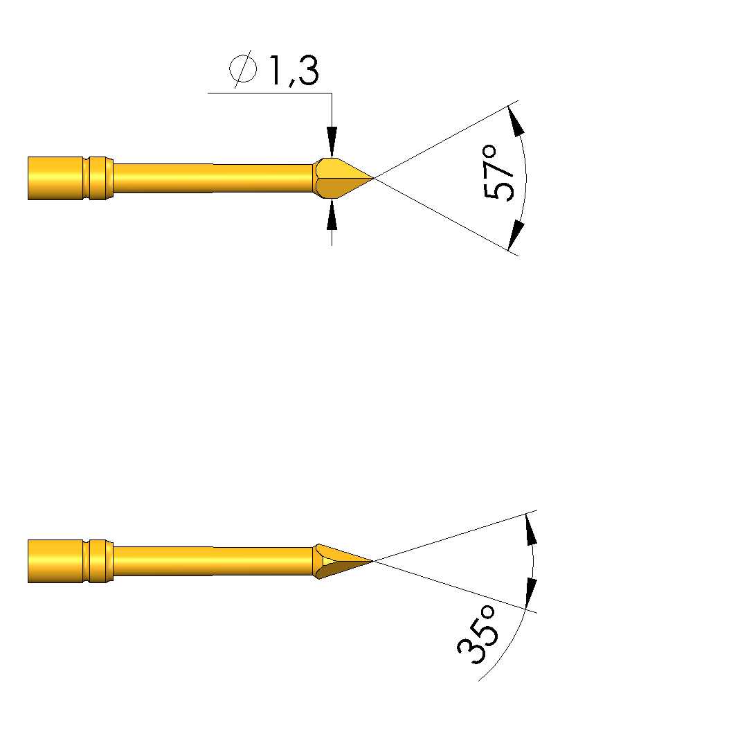 - Für einen optimalen Kontakt an den Prüfpunkten (z.B. PADs, VIAs, und PINs) stehen verschiedene Kopfformen in unterschiedlichen Durchmessern und Veredelungen zur Auswahl.