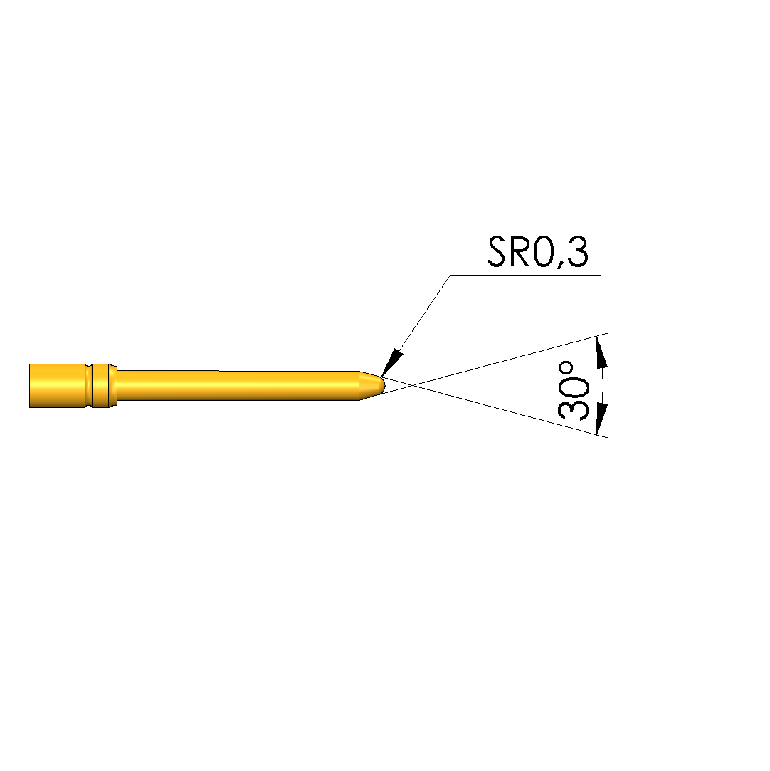| Kopfform: | 13 Spitze 30°, abgerundet |