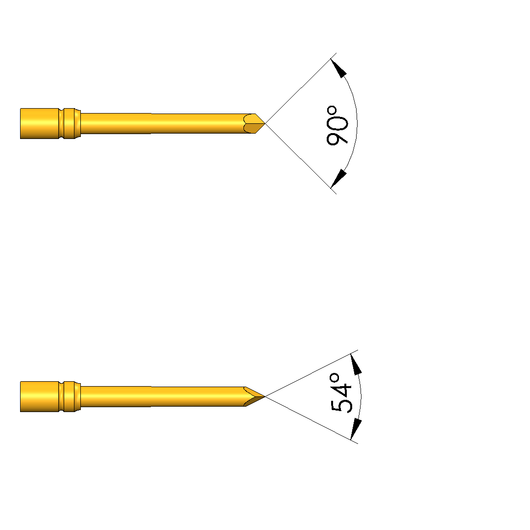 - Für einen optimalen Kontakt an den Prüfpunkten (z.B. PADs, VIAs, und PINs) stehen verschiedene Kopfformen in unterschiedlichen Durchmessern und Veredelungen zur Auswahl.