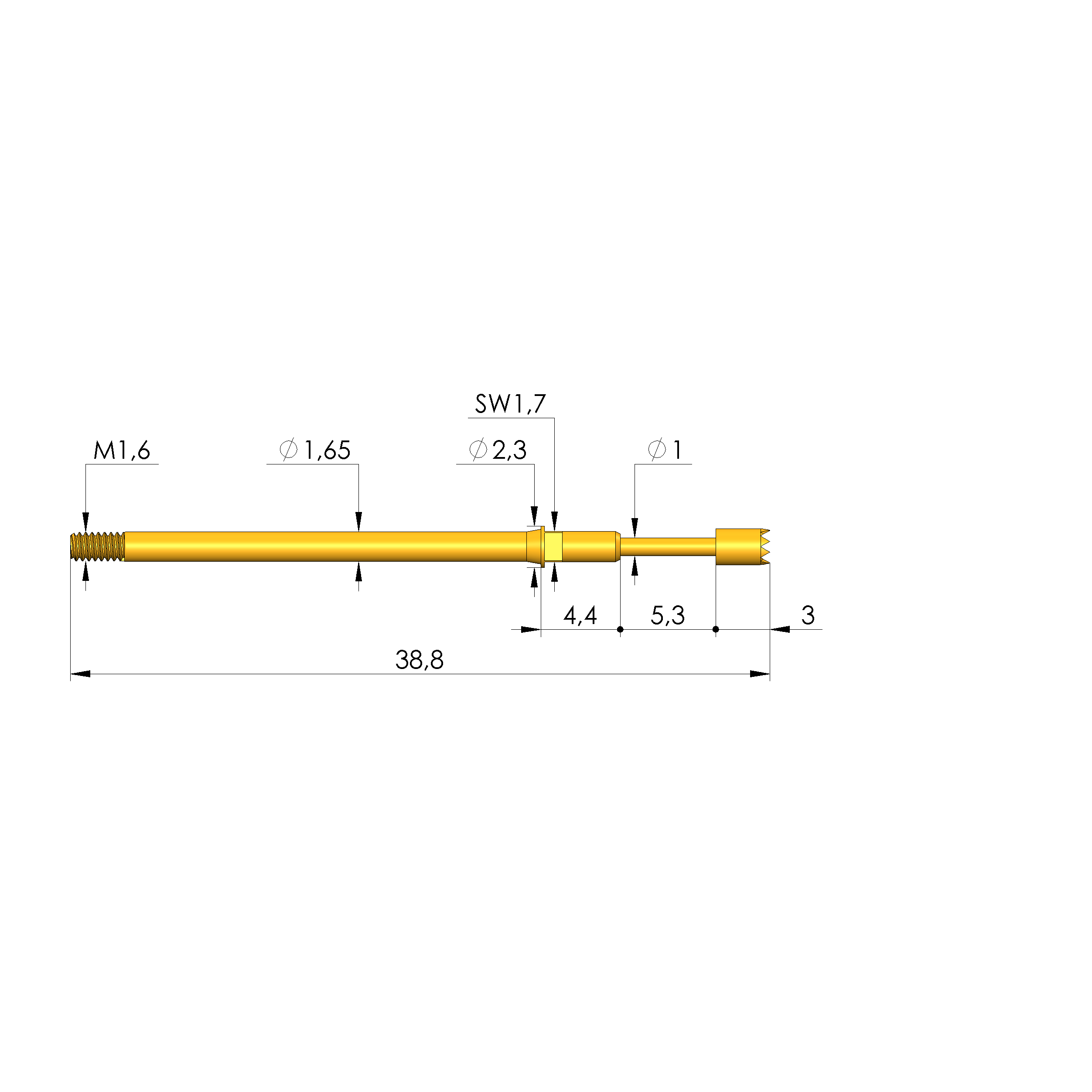 - Gesamtlänge: 38,8 mm