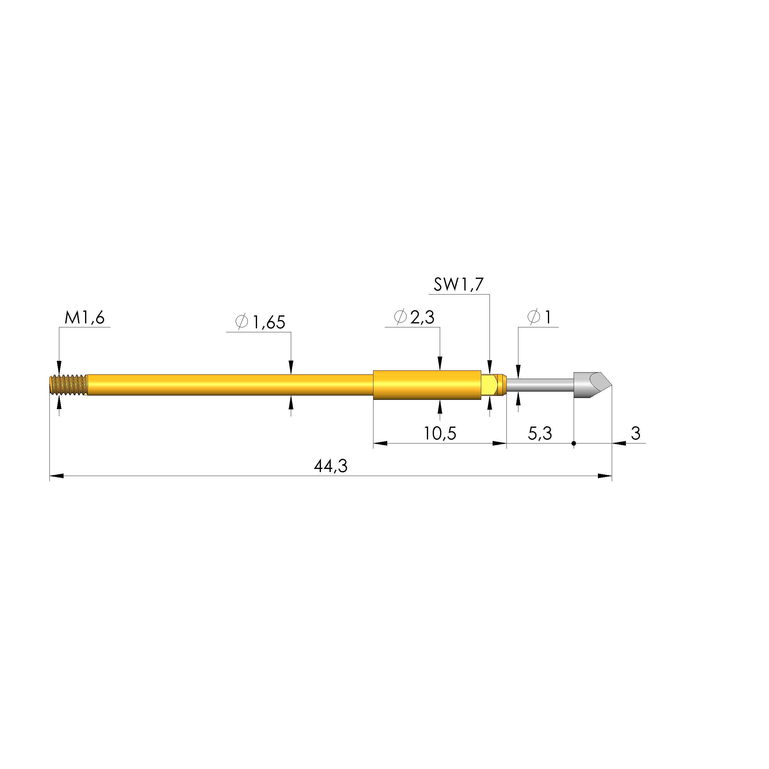 - Gesamtlänge: 44,3 mm