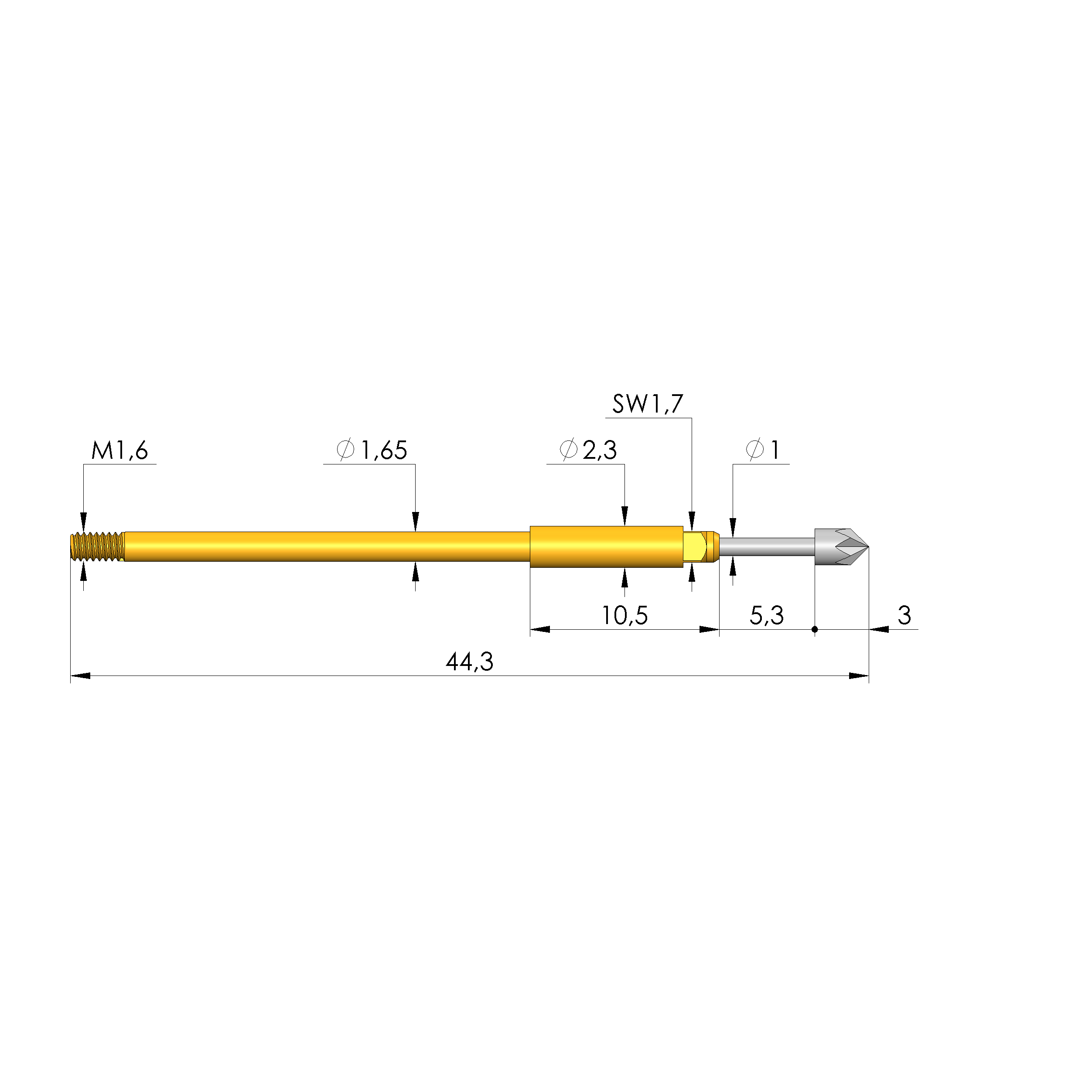 - Gesamtlänge: 44,3 mm