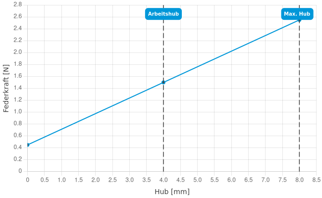 | Federkraft bei Arbeitshub: | 1,5 N |