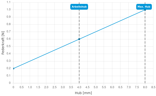 - Federkraft bei Arbeitshub: 0,6 N