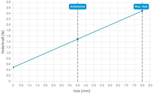| Federkraft bei Arbeitshub: | 1,5 N |