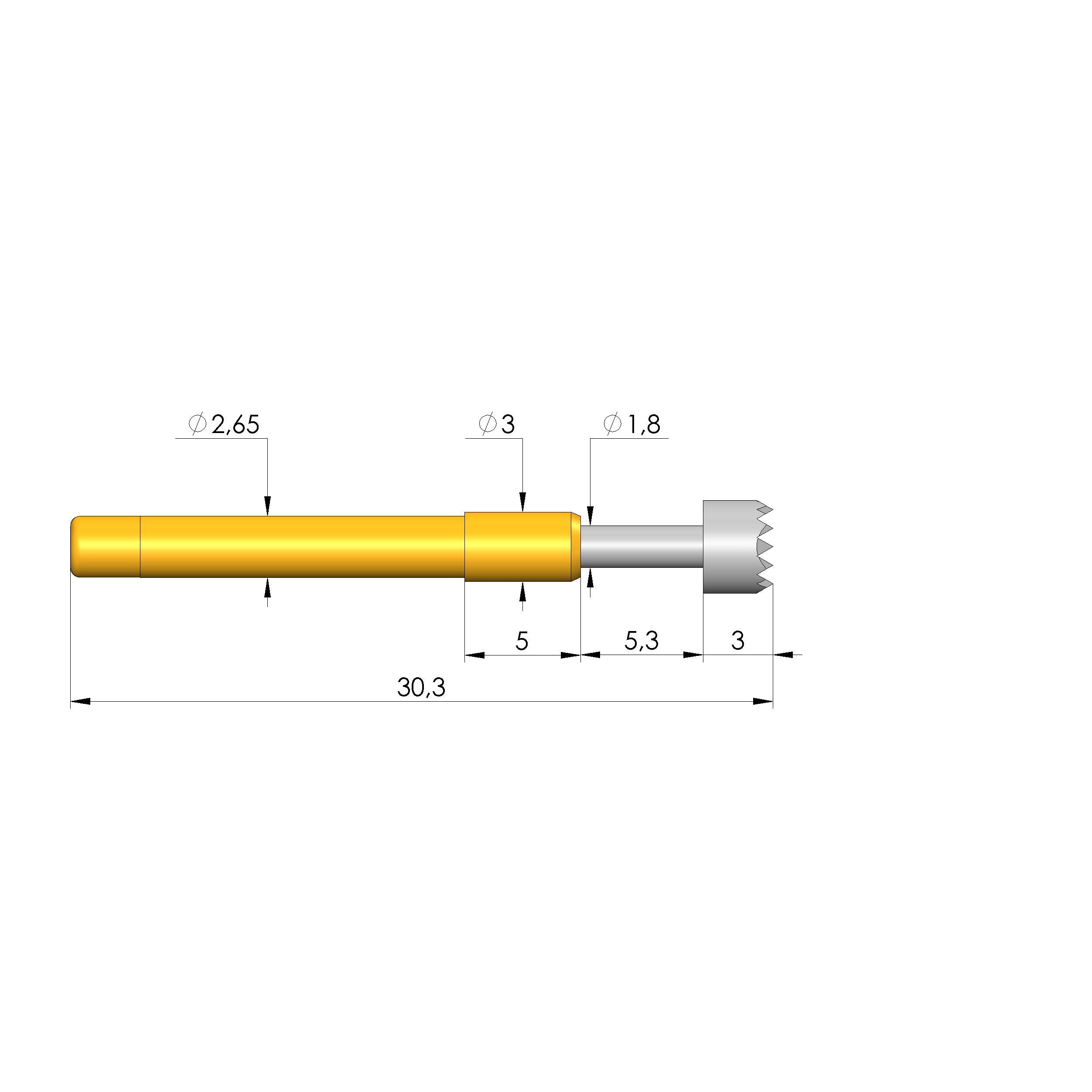 - Optimale Einstellung der Hubverhältnisse im Prüfadapter: Der Kragen (E-Maß) ist in unterschiedlichen Höhen lieferbar, was in Kombination mit den Kontaktsteckhülsen eine maximale Flexibilität der Einbauhöhe zulässt