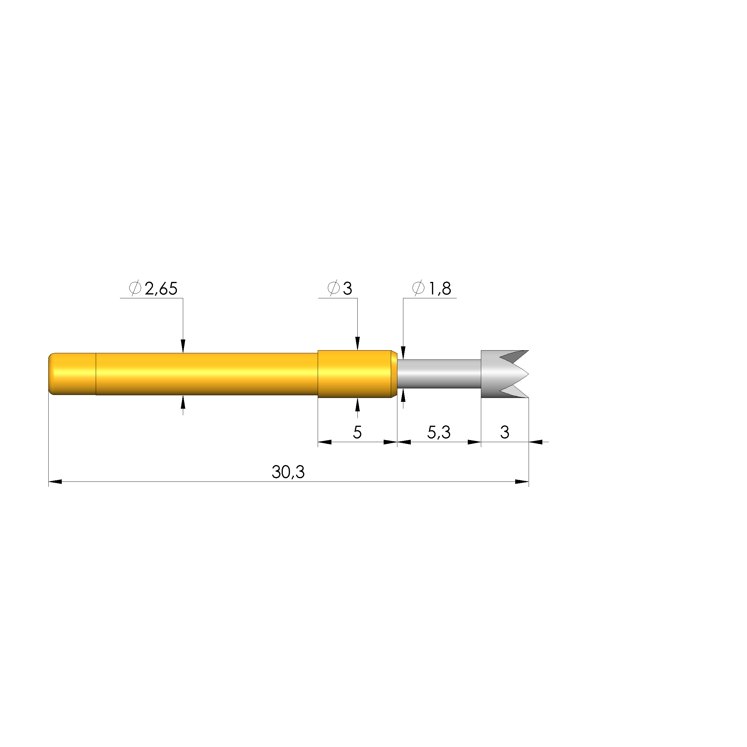 - Robuste und stabile Kontaktstifte mit ausgeprägtem Kragen (Anschlag) an der Stifthülse