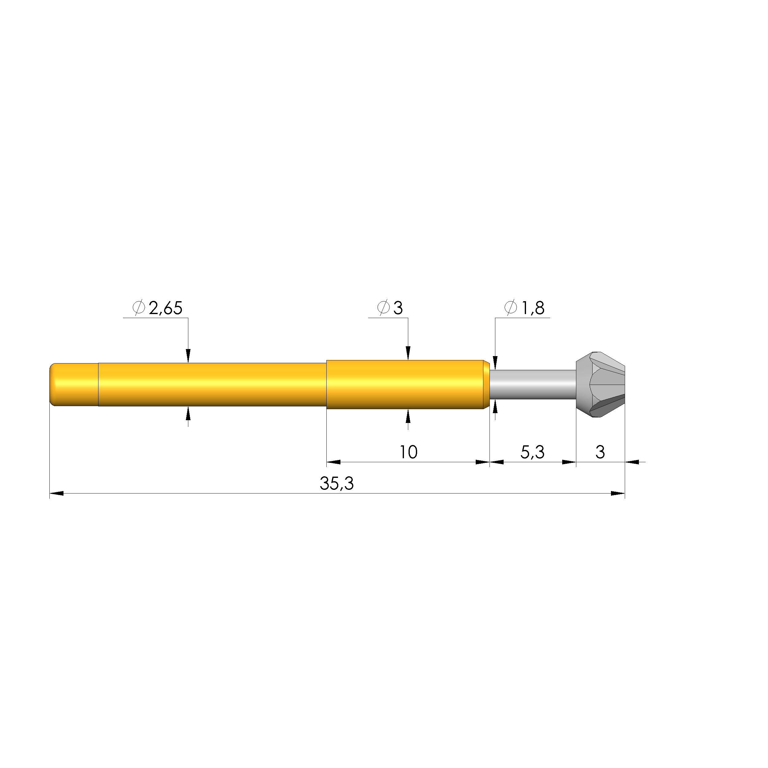 - Robuste und stabile Kontaktstifte mit ausgeprägtem Kragen (Anschlag) an der Stifthülse