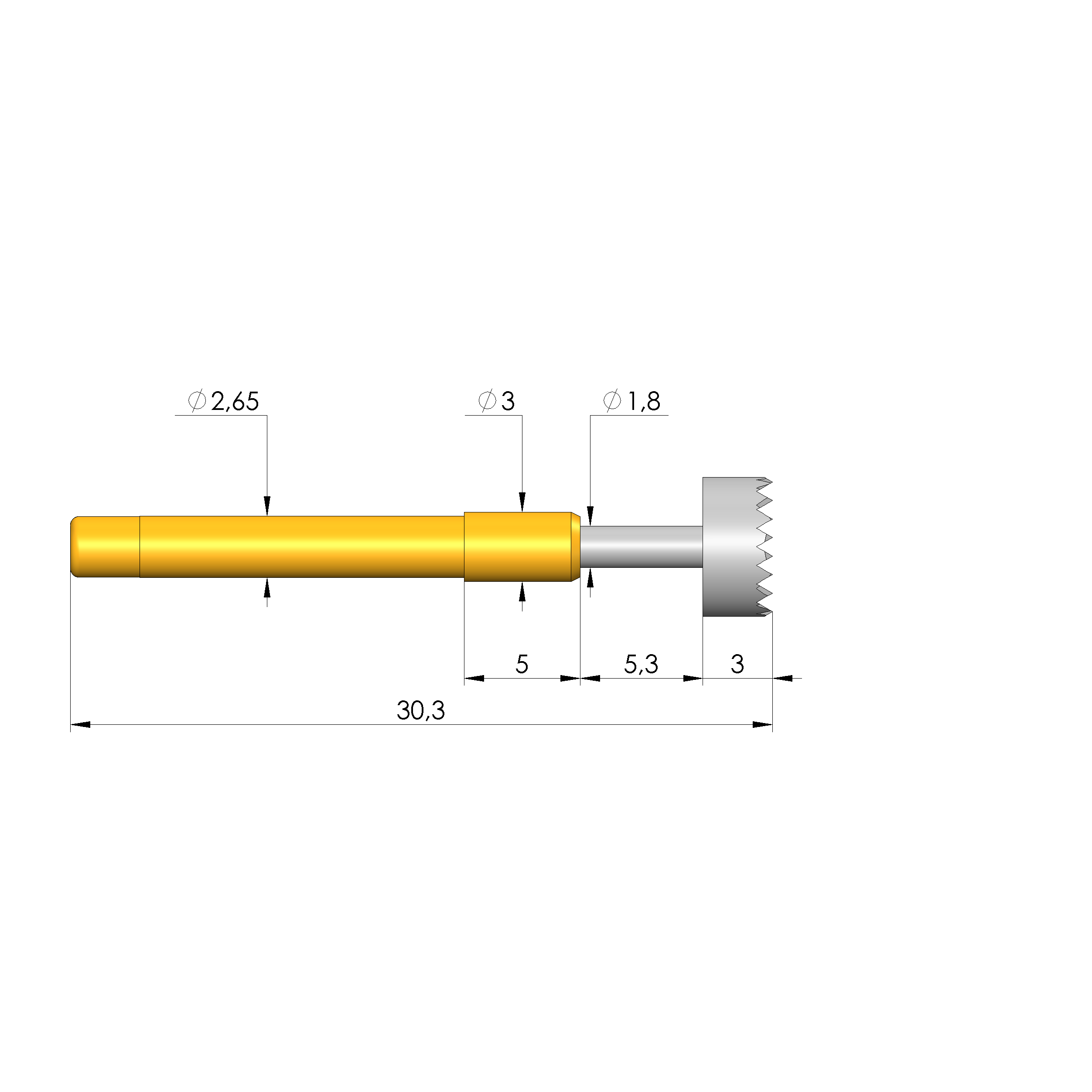 - Optimale Einstellung der Hubverhältnisse im Prüfadapter: Der Kragen (E-Maß) ist in unterschiedlichen Höhen lieferbar, was in Kombination mit den Kontaktsteckhülsen eine maximale Flexibilität der Einbauhöhe zulässt