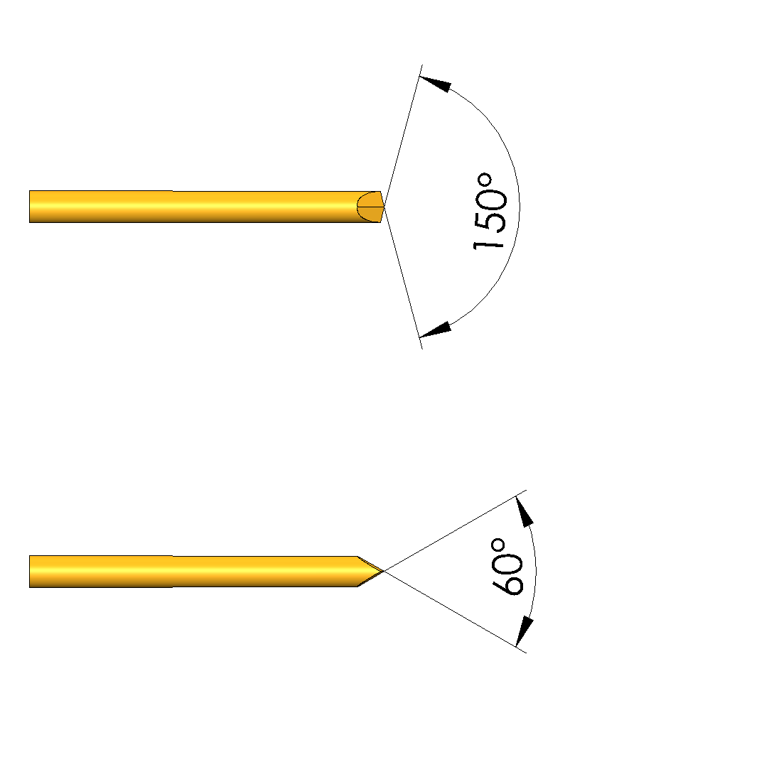 - Kopfform: 38 Dolch 150°, selbstreinigend