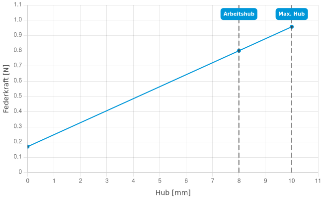 | Federkraft bei Arbeitshub: | 0,8 N |