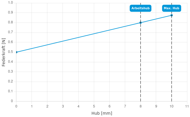 | Federkraft bei Arbeitshub: | 0,8 N |