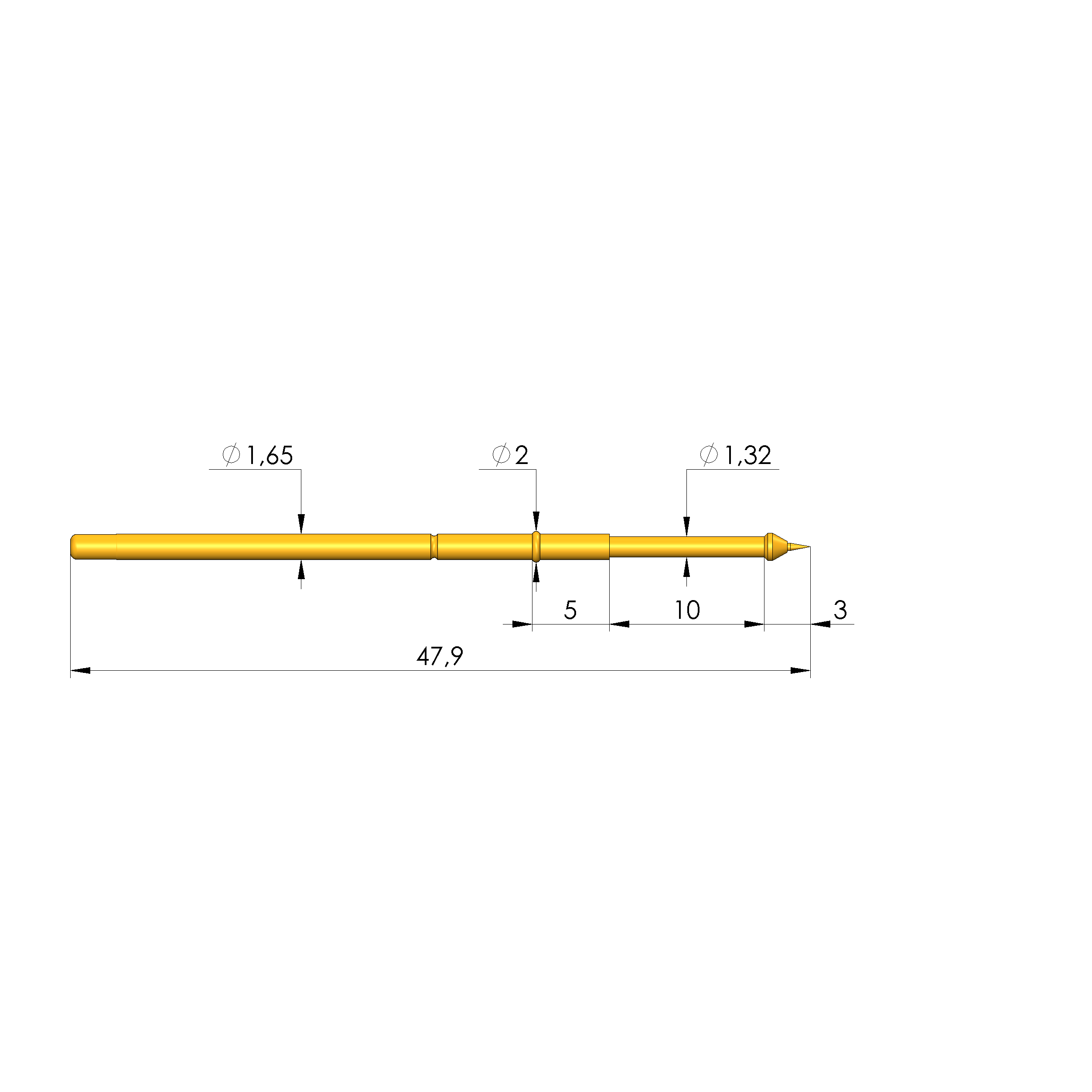 - Mittig-rollierte Variante mit geringem Taumelspiel zur Kontaktierung von kleinen Prüfpunkten