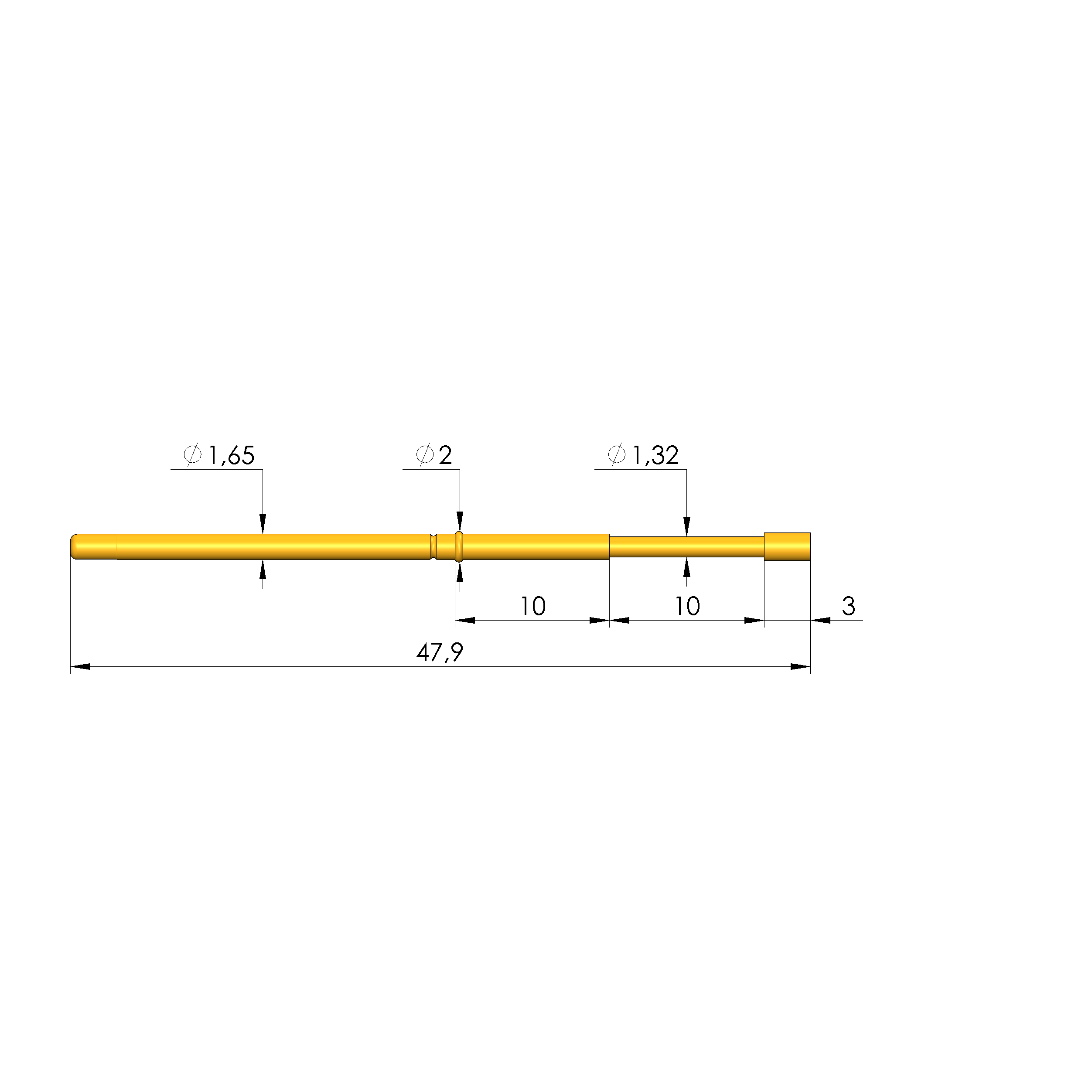 - Mittig-rollierte Variante mit geringem Taumelspiel zur Kontaktierung von kleinen Prüfpunkten