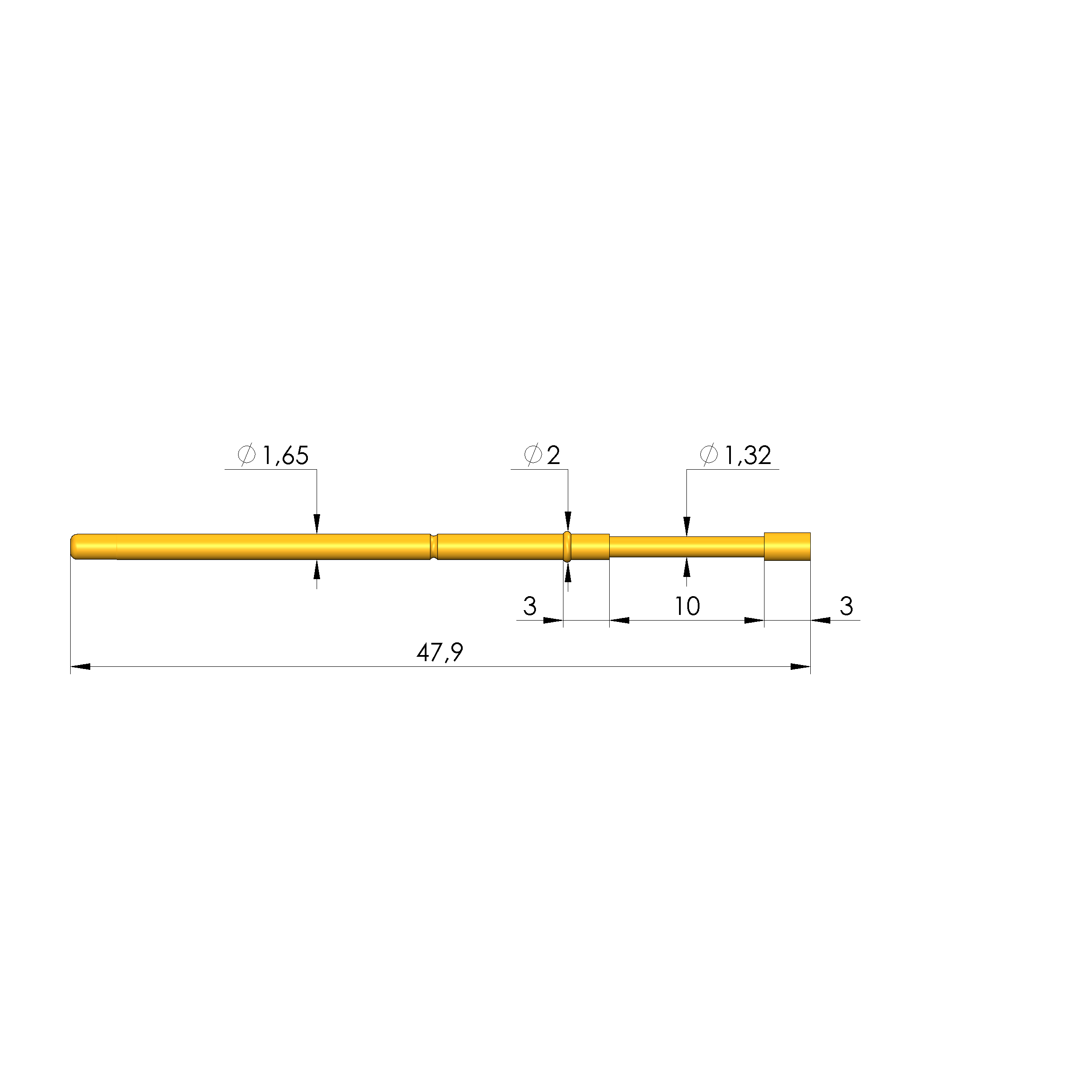 - Mittig-rollierte Variante mit geringem Taumelspiel zur Kontaktierung von kleinen Prüfpunkten