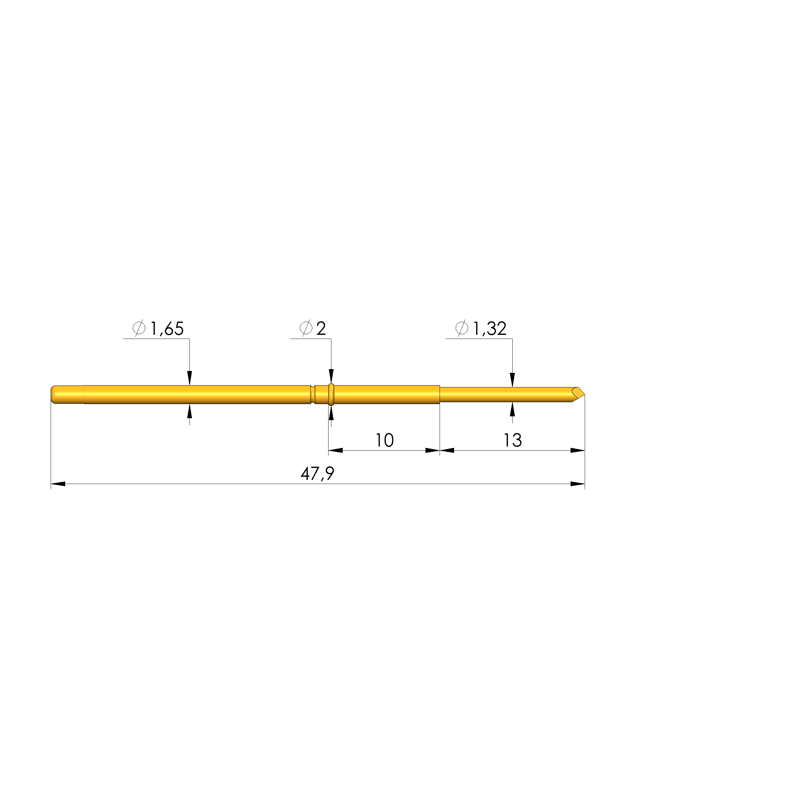 - Mittig-rollierte Variante mit geringem Taumelspiel zur Kontaktierung von kleinen Prüfpunkten
