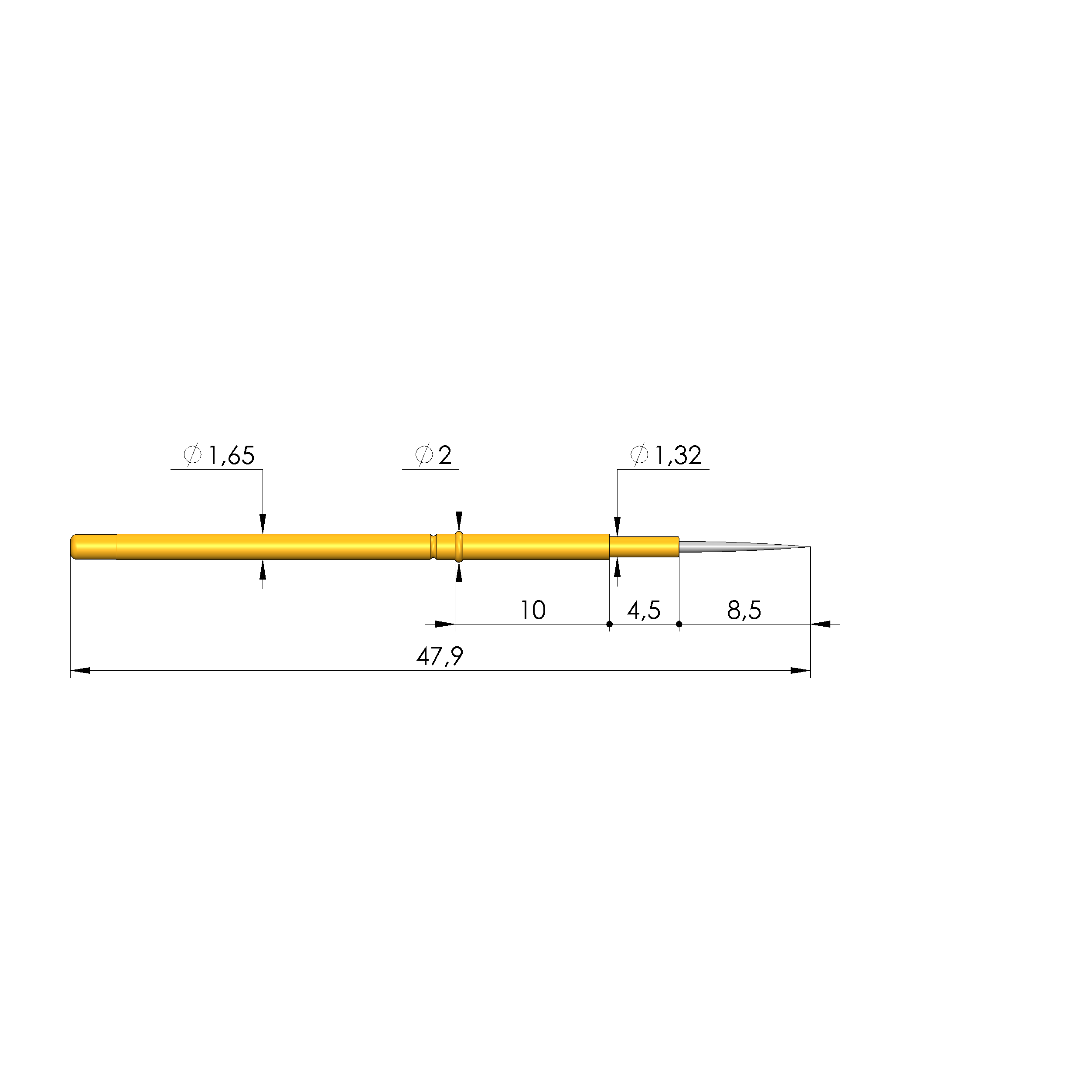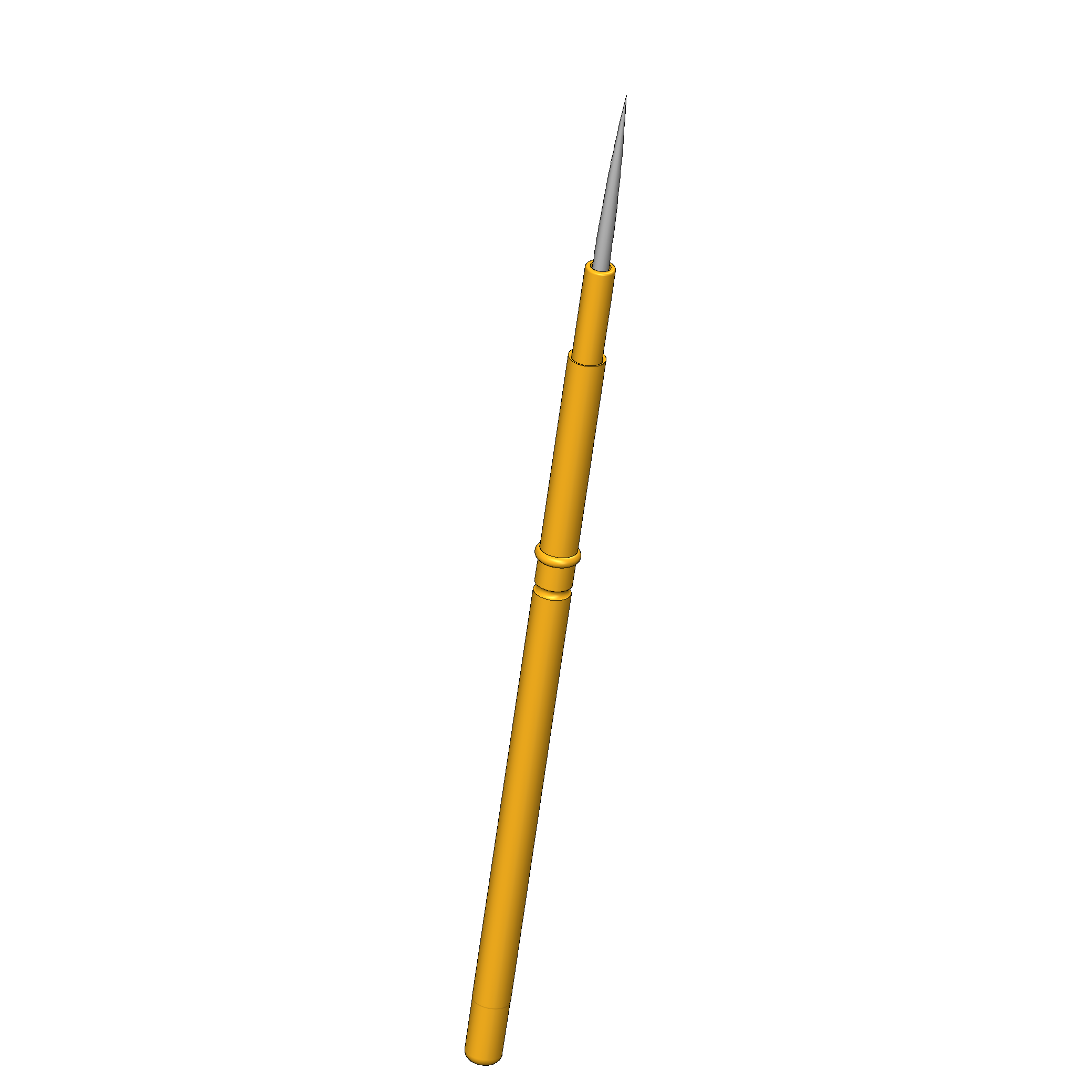 - Mittig-rollierte Variante mit geringem Taumelspiel zur Kontaktierung von kleinen Prüfpunkten
