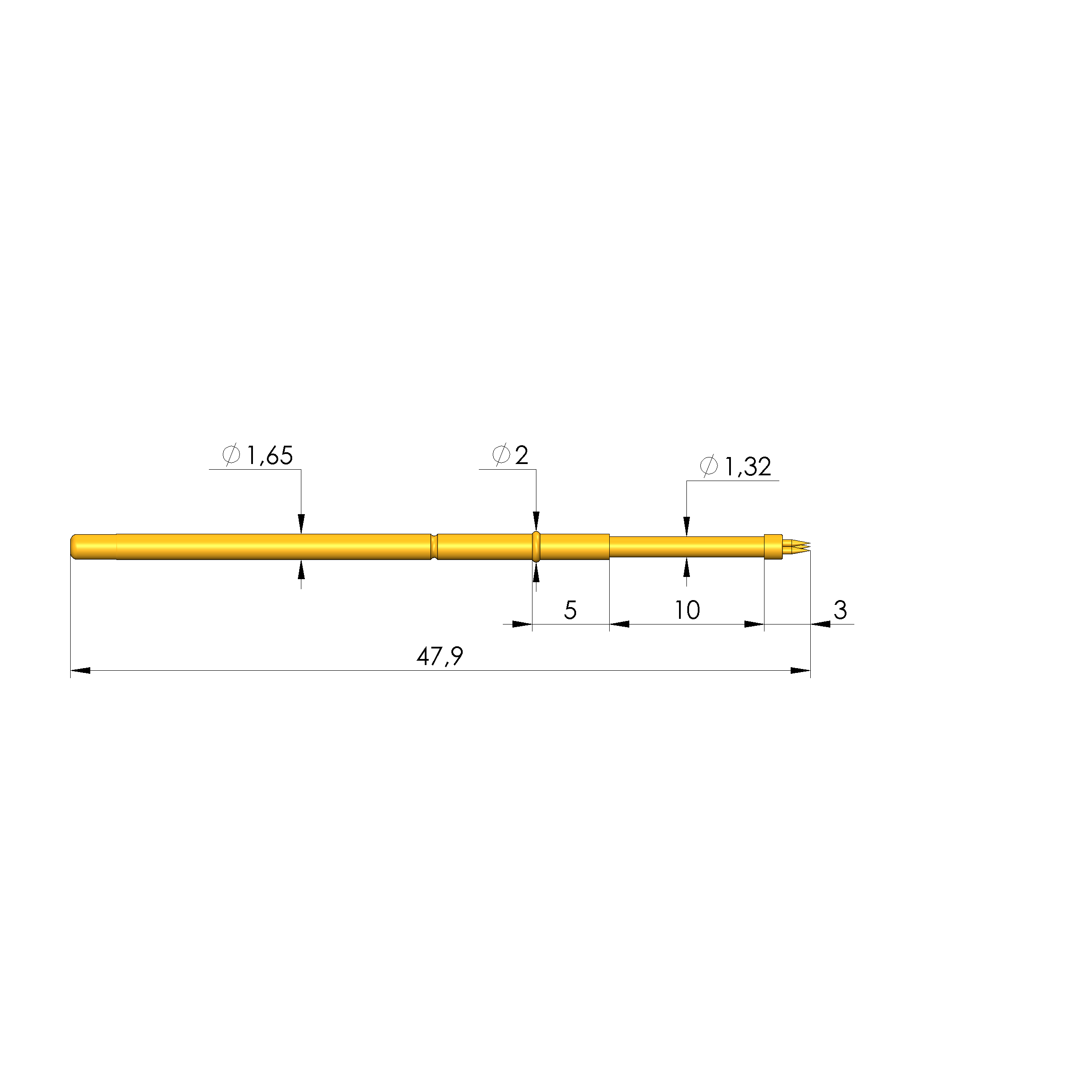 - Mittig-rollierte Variante mit geringem Taumelspiel zur Kontaktierung von kleinen Prüfpunkten