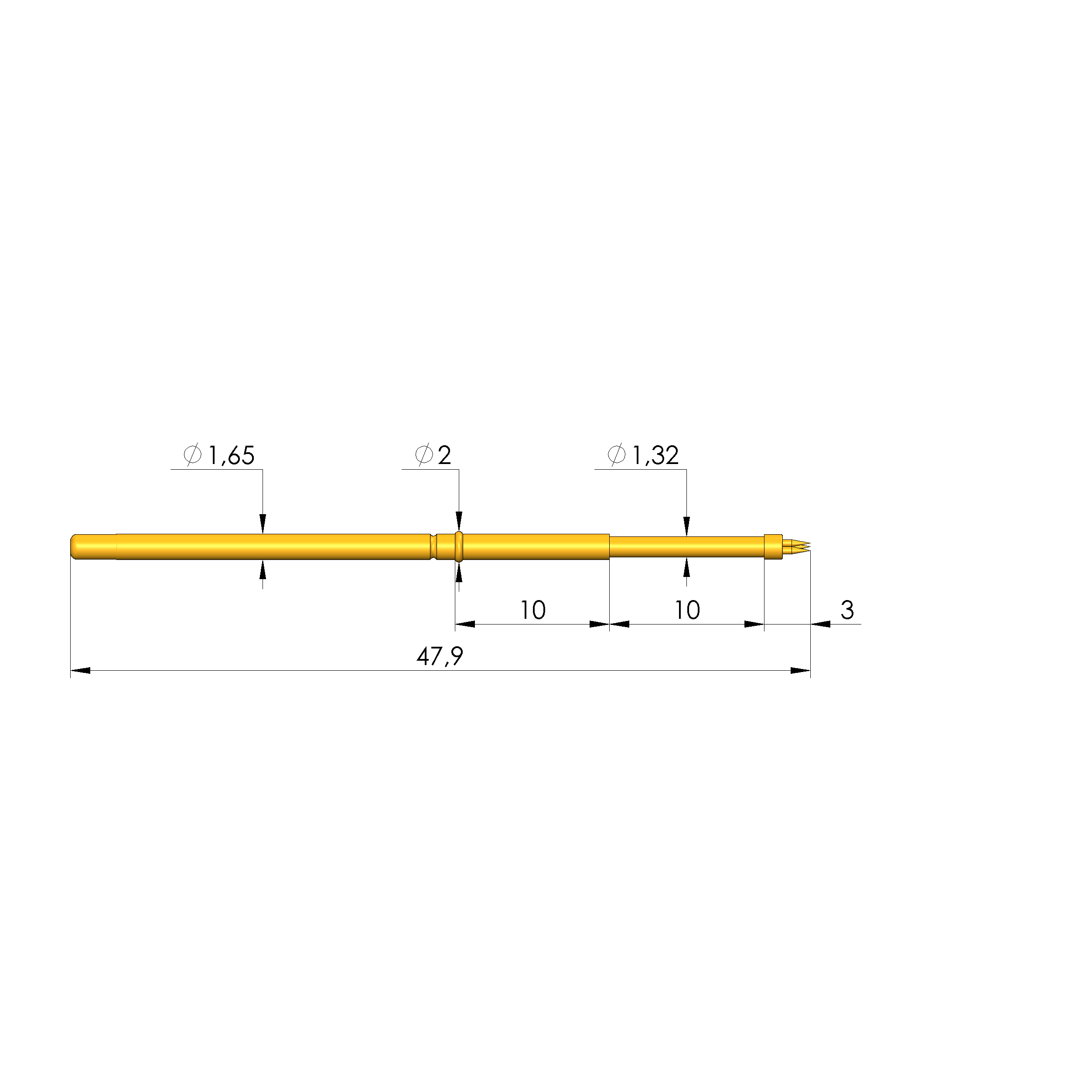 - Mittig-rollierte Variante mit geringem Taumelspiel zur Kontaktierung von kleinen Prüfpunkten