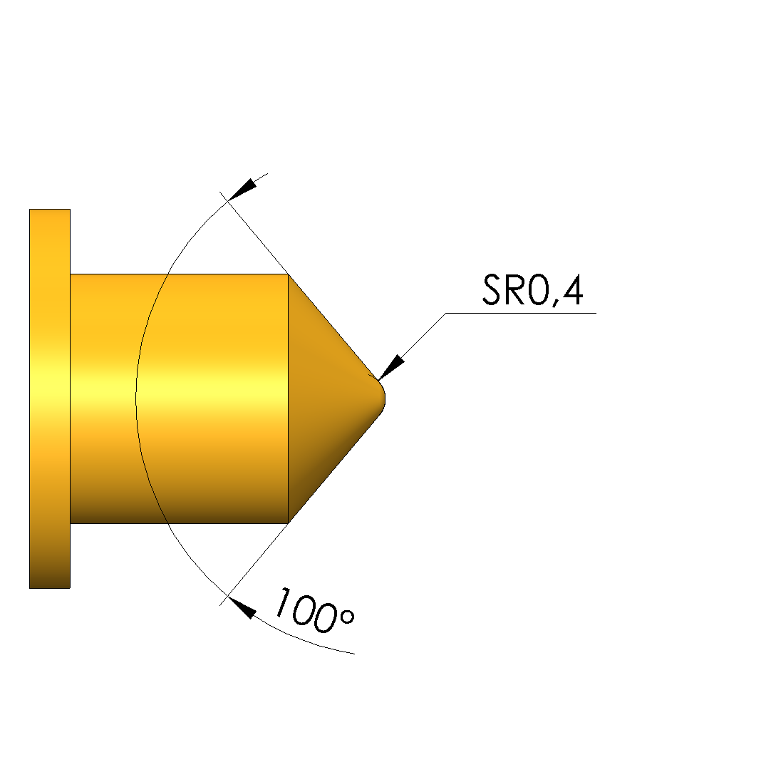 - Kopfform: 13 Spitze 30°, abgerundet