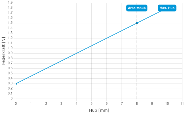 | Federkraft bei Arbeitshub: | 1,5 N |