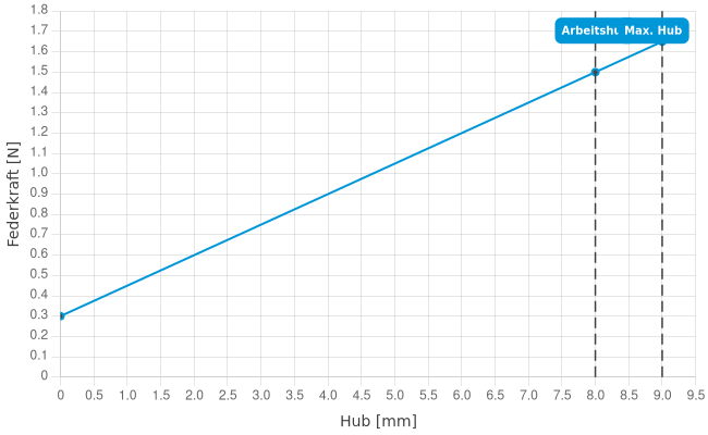 | Federkraft bei Arbeitshub: | 1,5 N |