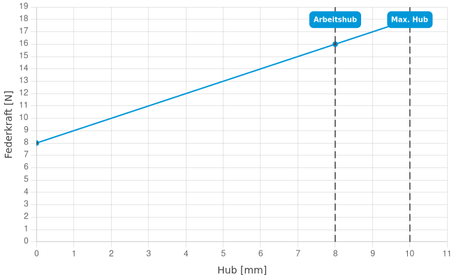 | Federkraft bei Arbeitshub: | 16 N |
