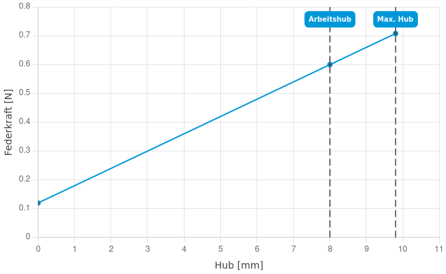 | Federkraft bei Arbeitshub: | 0,6 N |