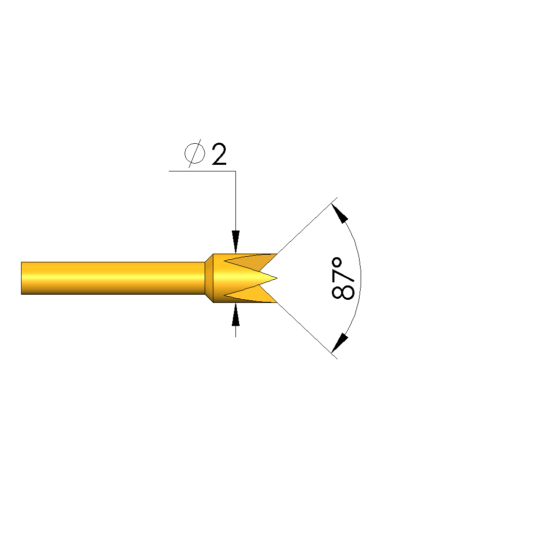 - Mittig-rollierte Variante mit geringem Taumelspiel zur Kontaktierung von kleinen Prüfpunkten