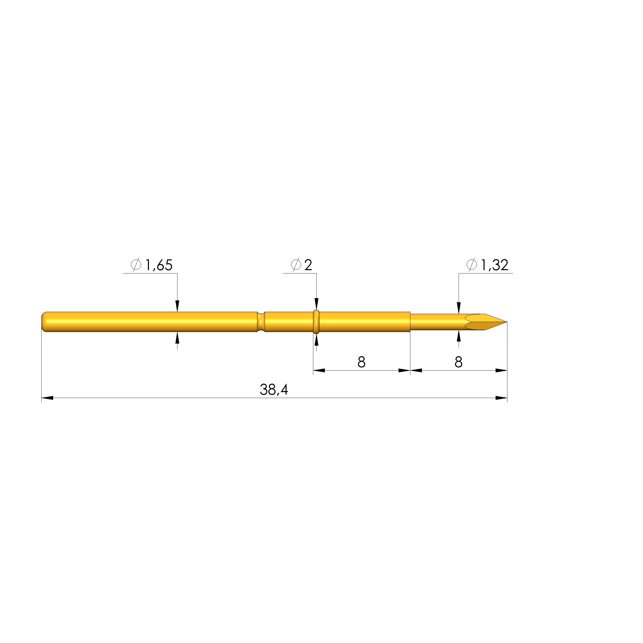 - Mittig-rollierte Variante mit geringem Taumelspiel zur Kontaktierung von kleinen Prüfpunkten