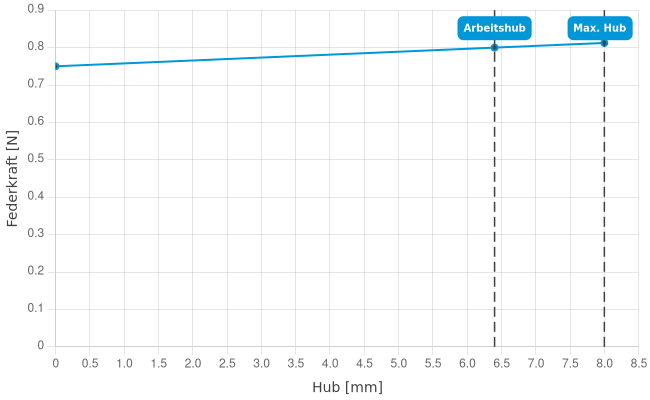 - Federkraft bei Arbeitshub: 0,8 N