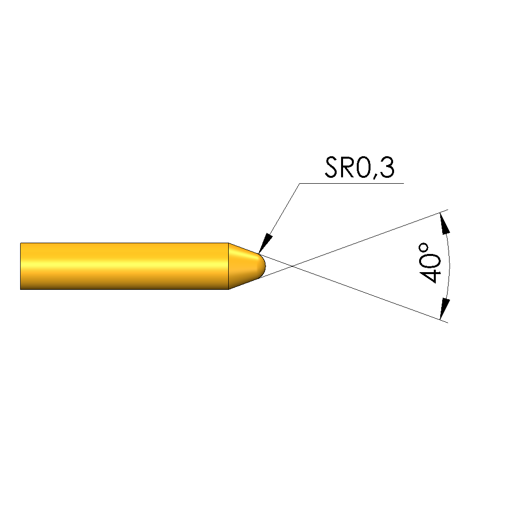 | Kopfform: | 13 Spitze 30°, abgerundet |