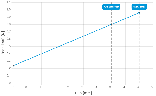| Federkraft bei Arbeitshub: | 0,8 N |