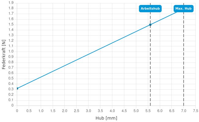 | Federkraft bei Arbeitshub: | 1,5 N |