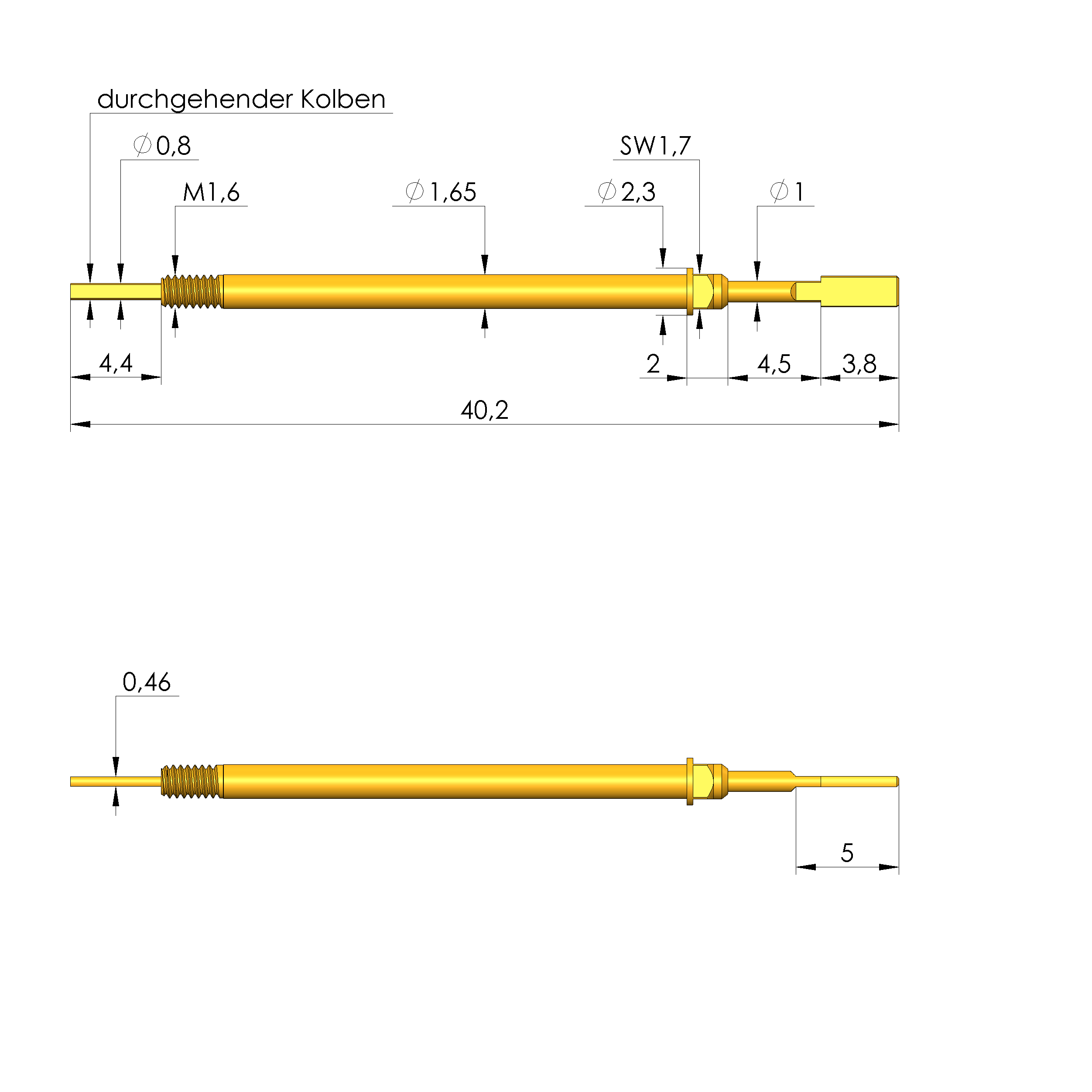 - Durchgehender Kolben: ø0,8 x 0,46 x 4,4