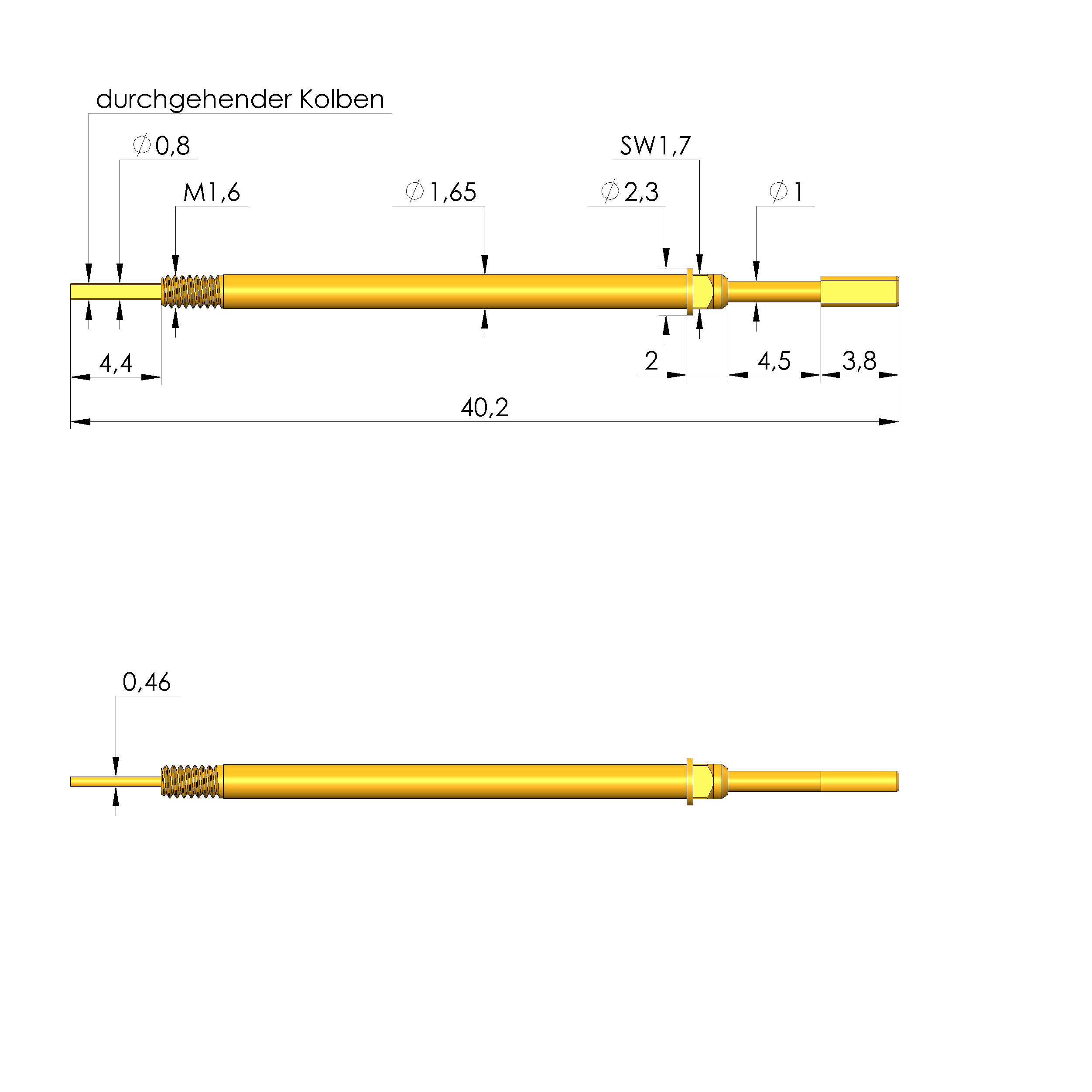 - Durchgehender Kolben: ø0,8 x 0,46 x 4,4